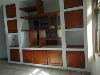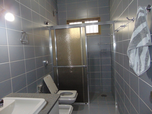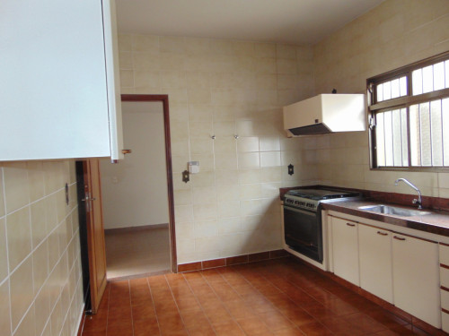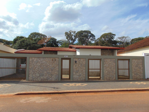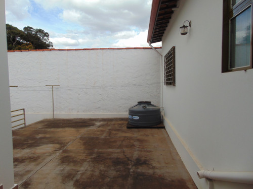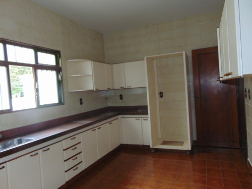 três quartos (uma suíte com armários), sala, copa, cozinha, mais dois banheiros, lavanderia, despejo, garagem.