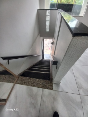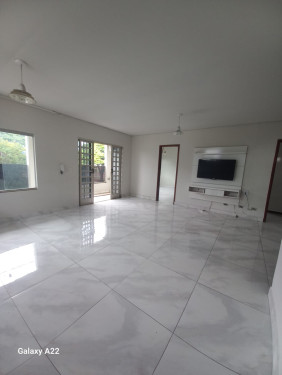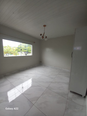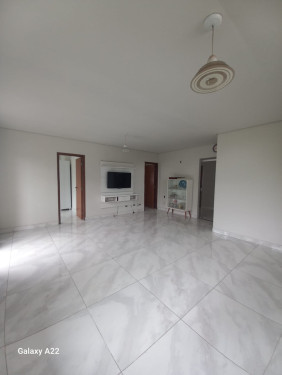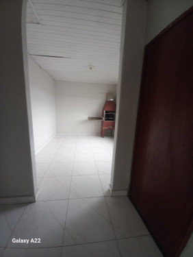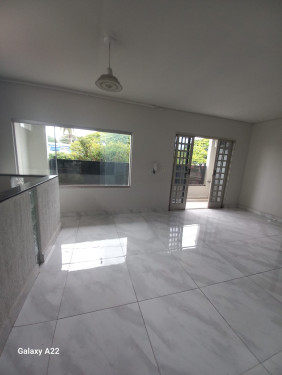 sem garagem, sala com sacada, dois quartos, banheiro social, cozinha, comodo com churrasqueira.