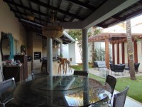 Sala três ambientes, sala tv, cozinha modulada, três suítes, sendo uma com closet e banheira de hidro, lavabo externo, área gourmet, banheiro externo, despejo, lavanderia, garagem e jardins.